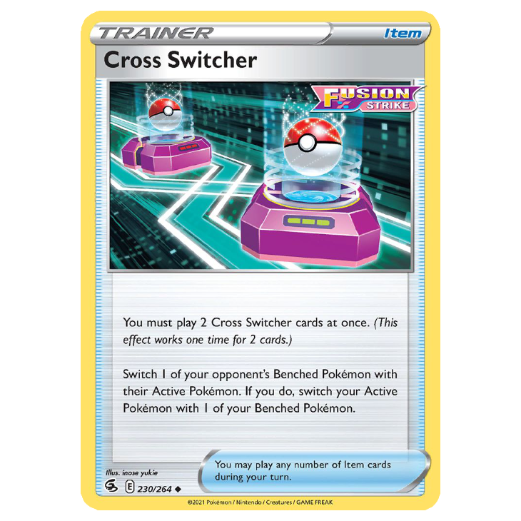 Cross Switcher from Sword & Shield Fusion Strike - 230/264. Comes in either standard Uncommon or Reverse Holo.