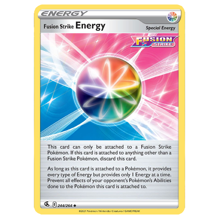 Fusion Strike Energy from Sword & Shield Fusion Strike - 244/264. Comes in either standard Uncommon or Reverse Holo.