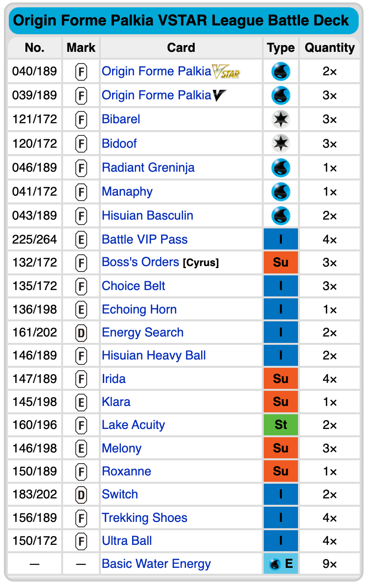 CLEARANCE! Origin Forme Palkia League Battle Deck