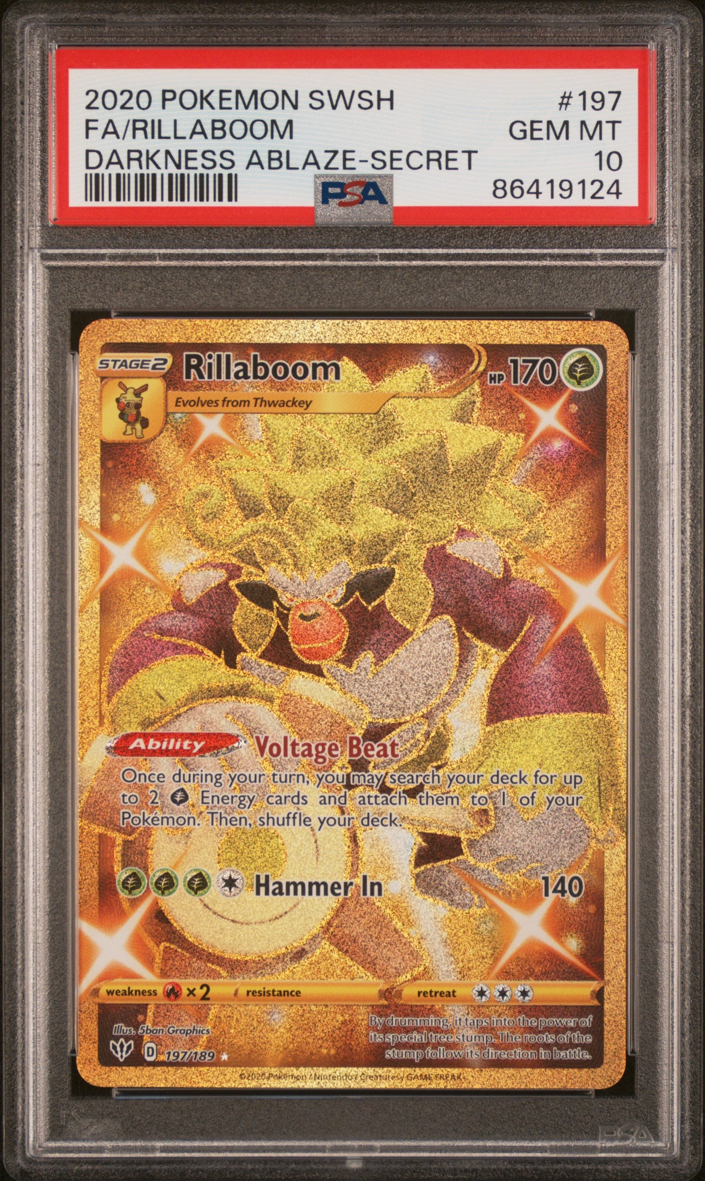 PSA 10 GEM MT Rillaboom - Darkness Ablaze 197/189 Secret Rare Gold