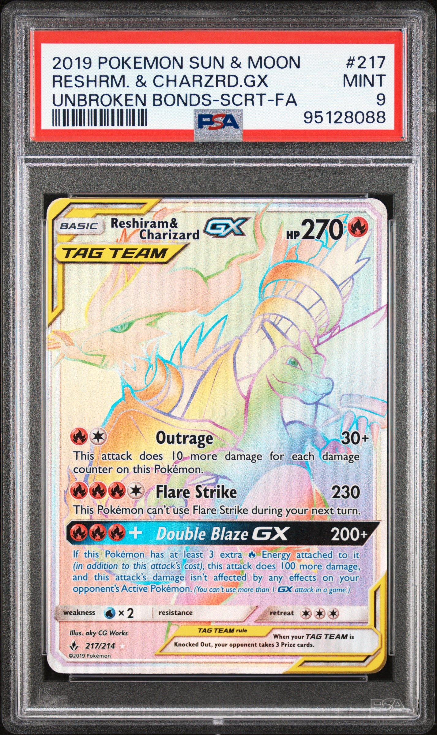 PSA 9 MINT Reshiram & Charizard GX - Unbroken Bonds Secret Hyper Rare 217/214
