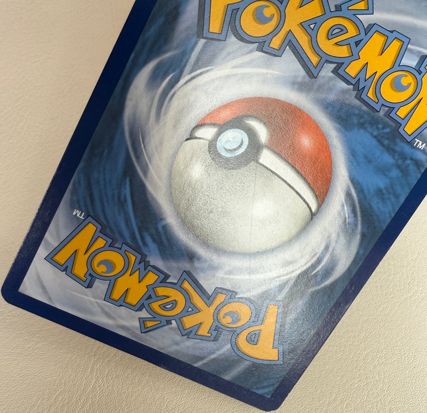 We would describe this card as MP (moderately played) or better. The imperfections are mainly on the backside - in the third photo we have shown the angle/lighting which the card looks worst in.